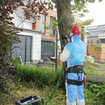 Wir verfügen über eine 20-jährige Erfahrung an Seilzugangstechniken, sodass uns die Arbeitstechniken bei Risiko- und Schwerstfällung bestens vertraut sind. Sicherheit steht dabei für uns an erster Stelle. Alle unsere Mitarbeiter sind entsprechend den Richtlinien der Berufsgenossenschaft ausgebildet. Wir arbeiten nach den gesetzlichen Vorschriften und Regeln.