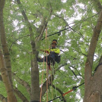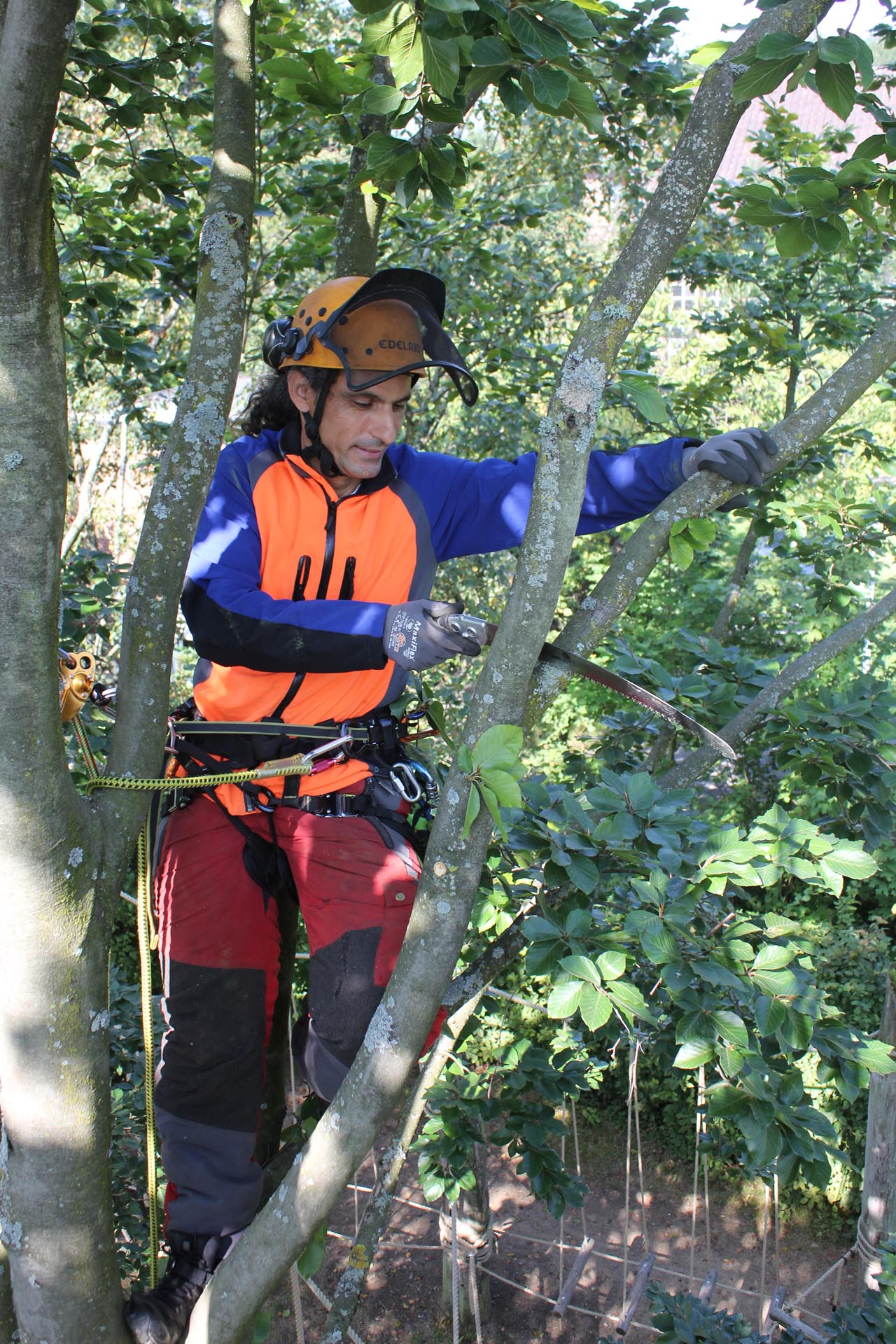 Unser Team aus Baumpflegern verfügt über langjährige Expertise im Bereich Seilklettertechnik, Baumpflege und -fällungen, Baumkontrolle und Kataster. Wir übernehmen auch Efeuentfernung, Wurzelentfernung, Pflege von Außenanlagen und Gärten. Alle Baumarbeiten erfolgen nach ZTV.